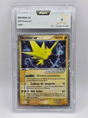 ⚡ Incarnez la foudre avec Électhor ex, carte promo exclusive datant de 2005 et issue de l’ère EX. Numérotée 033, cette carte fait partie de la mythique série de promos mettant en avant les oiseaux légendaires, aujourd’hui très prisée des collectionneurs.